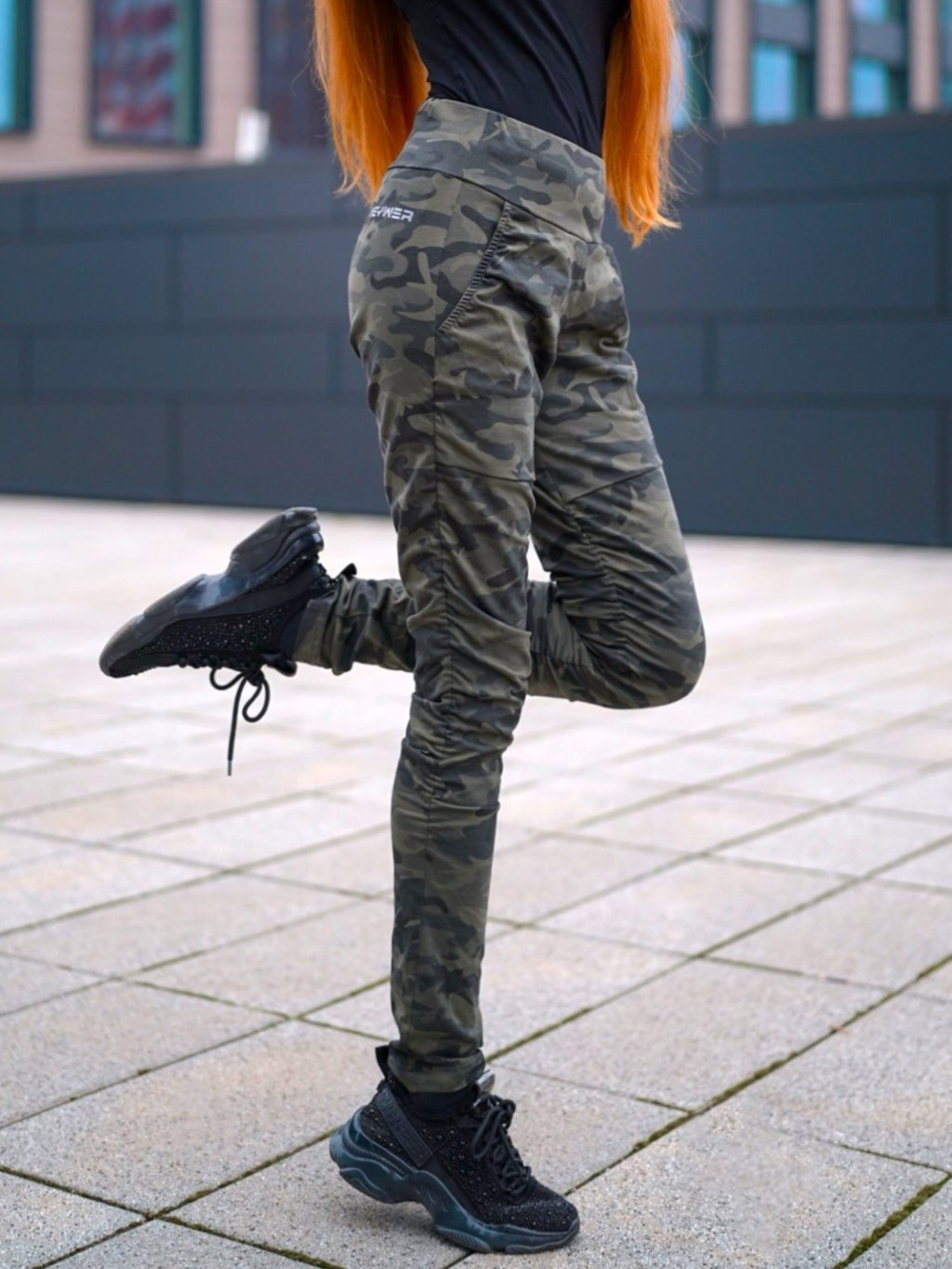 Dámské bavlněné kalhoty maskáčové zelené LK723