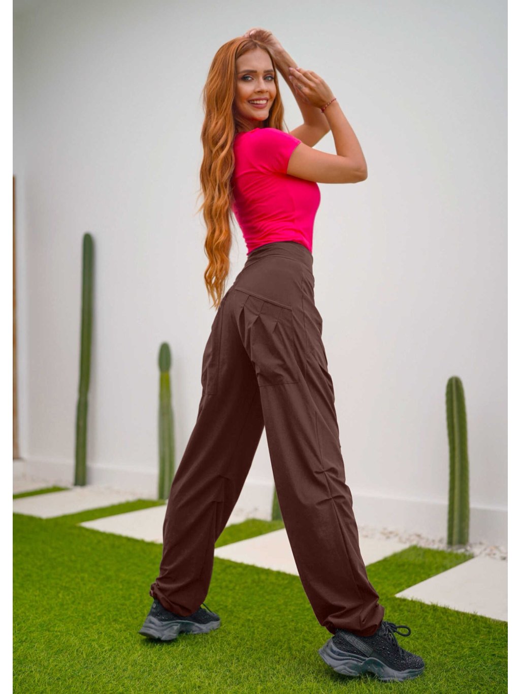 Dámské funkční elastické sportovní kalhoty hnědé EK938
